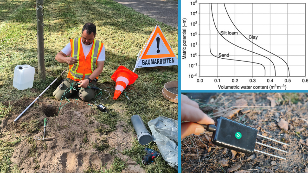 Mit Sensorik können Sie den für jeden Boden einzigartigen Zusammenhang zwischen volumetrischem Feuchtigkeitsgehalt und Bodensaugspannung erfassen und als Retentionskurve visualisieren.